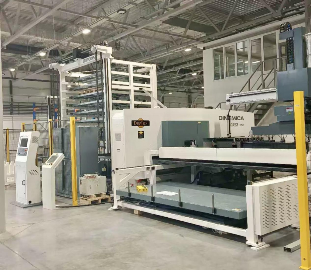 Punching Unit: Centered on a DINAMICA3.1550 servo CNC turret punching machine, also equipped with a tower storage system and an automatic loading/unloading device.